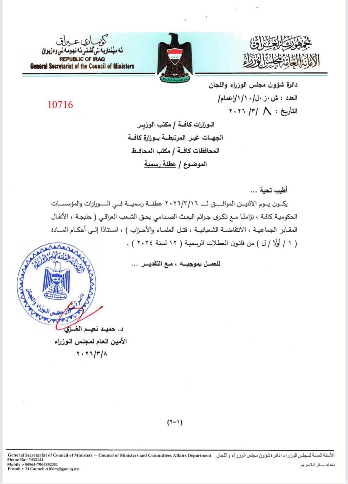 توزيع المنح العقارية لذوي الشهداء من قبل مدير عام دائرة شهداء الحشد الشعبي الدكتور طارق المندلاوي