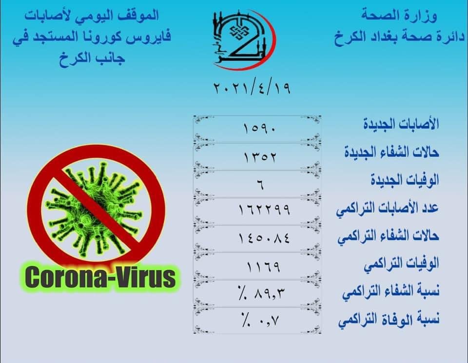 وأعلنت وزارة الصحة اليوم الاثنين، عن تسجيل 7775 حالة إصابة جديدة في عموم العراق، مقابل تماثل 7507 حالة للشفاء، و 45 وفاة جراء الفيروس.وأدناه جدول الاصابات والوفيات..