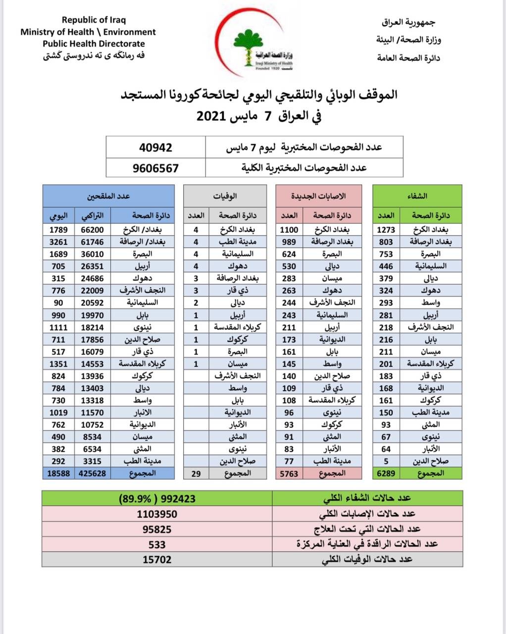الصحة تعلن الموقف الوبائي والتلقيحي اليوم