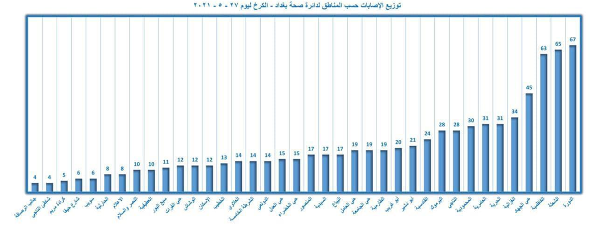 اعلنت دائرة صحة الكرخ في بغداد، الخميس، تفاصيل الإصابات والوفيات الجديدة بفايروس كورونا.وأدناه جدول الإصابات والوفيات وفقاً لدائرة صحة الكرخ:
