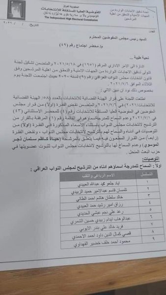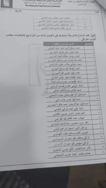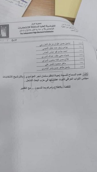 أصدرت الهيئة التميزيه للانتخابات قراراً يقضي بمنع أعضاء حزب البعث من المشاركة في الانتخابات وإلغاء القرار الذي اتخذته الهيئة التميزيه للمسائلة والعدالة.