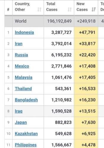 " العراق يحتل المركز 8 على مستوى العالم بعدد الاصابات اليومية حيث بلغت اليوم 13515