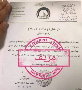وذكر بيان لمديرية الاعلام في الهيئة ، اليوم الاحد، أن "هيئة الحشد الشعبي تنفي الكتاب المتداول إلى الالوية (313 - 314 - 315 ) بشان تغييب مقاتلين".