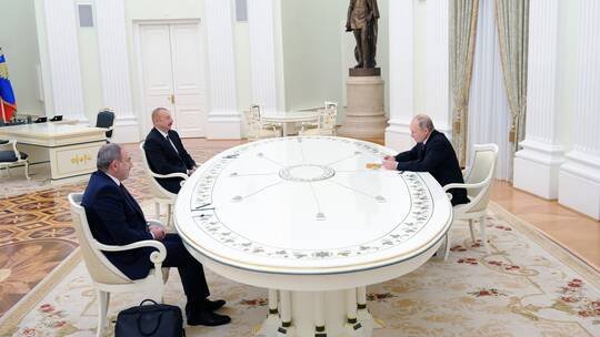 ومن المتوقع أن تتركز محادثات اليوم بين بوتين وعلييف وباشينيان على مسألة تطبيق الاتفاقات المبرمة بين الدول الثلاث بشأن وقف إطلاق النار في إقليم قره باغ المتنازع عليه بين الجانبين الأذربيجاني والأرمني.