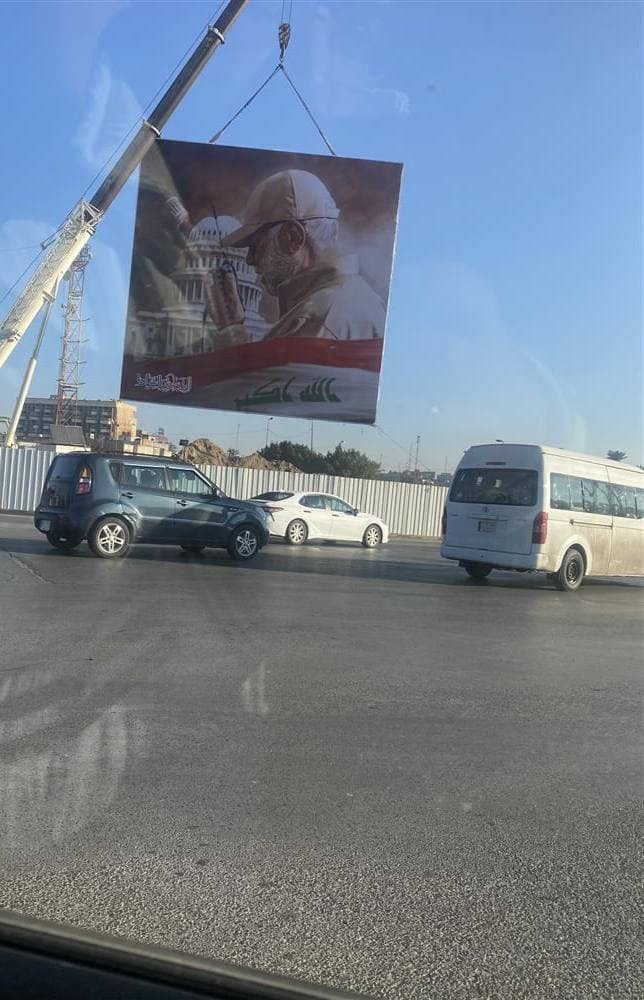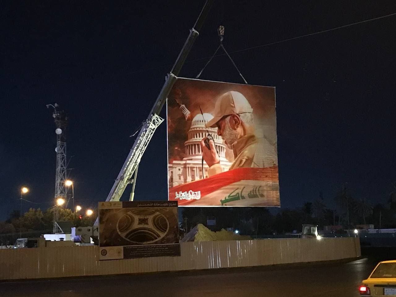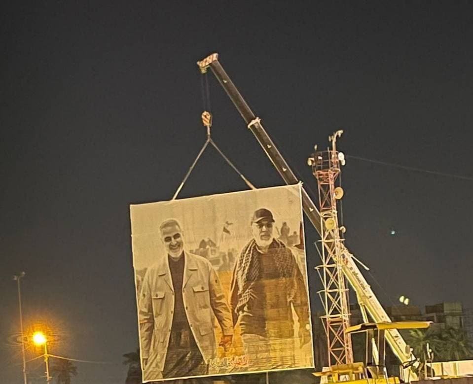 نصب جدارية عملاقة للشهيد أبو مهدي المهندس وسط بغداد