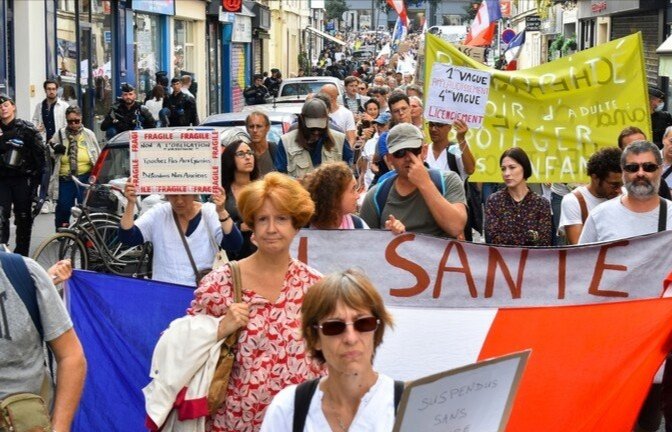 أفادت وسائل بأن احتجاجات اندلعت في باريس ومدن فرنسية أخرى، رفضا للإجراءات الخاصة بشهادة اللقاح، ولتصريحات الرئيس إيمانويل ماكرون الأخيرة التي وصفت بالنابية تجاه غير المطعمين.