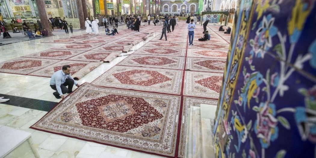 باشرت كوادر قسم رعاية الحرم الشريف التابع للعتبة الحسينية المقدسة أعمالها في فرش صحن الإمام الحسين عليه السلام بالسجاد الجديد.