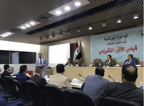 أقامت الدائرة البرلمانية بمجلس النواب العراقي وبالتعاون مع مديرية البحوث والتطوير في المجلس ورشة قانونية بعنوان (قياس الأثر التشريعي) والتي افتتح أعمالها معاون مدير عام الدئرة البرلمانية السيد آري جاسم محمد مرحبا بمدراء مكاتب مجلس النواب العراقي من جميع محافظات العراق مؤكداً على أهمية موضوعة قياس الأثر التشريعي مثمناً ً بنفس الوقت جهود مكاتب مجلس النواب في الفترة الماضية وما حققته من ورش قانونية كثيرة تعنى بمناقشة مشاريع القوانين المنظورة من قبل لجان المحلس النيابي مؤكداً ان التقارير الواصلة لنا من قبل مكاتب المحافظات والمتضمنة ملاحظات وتعديلات المقترحة على مشاريع القوانين كانت محل اعتبار واعتماد من قبل لجان المجلس النيابي المختلفة من جهتها اكدت السيدة خنساء فخري المحاضرة في مكتب مستشار البحث والتطوير عن أهمية موضوع قياس الأثر التشريعي وضرورة العمل به وانه امر غاية بالأهمية على صعيد عمل مجلس النواب ولجانه المختلفة