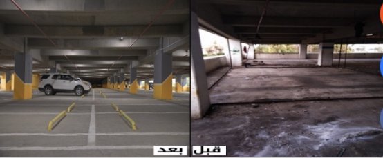 وذكر بيان لسلطة الطيران تلقته، "وكالة تنوع نيوز" انه "بعد استلام مبنى الموقف بحالته السابقة المتردية المتمثلة بامتلاء النفايات والانقاض مع توقف معظم المرافق الخدمية للموقف عن العمل من سلالم و مصاعد و المرافق الصحية، وِظفت ايادي عاملة مدربة على اعلى المستويات بتطوير مساحة وقوف السيارات العامة، و تجهيزها بعلامات و إشارات حديثة، و نصب مصاعد ايطالية المنشأ مستوردة خصيصا للموقف لتسع لـ١٢ شخص، مع تأهيل كامل للسلالم و ملحقاتها و اضافه أنظمة خدمية رفيعة المستوى لكل ممرات الموقف للسيارات و للمشاة ايضاَ".