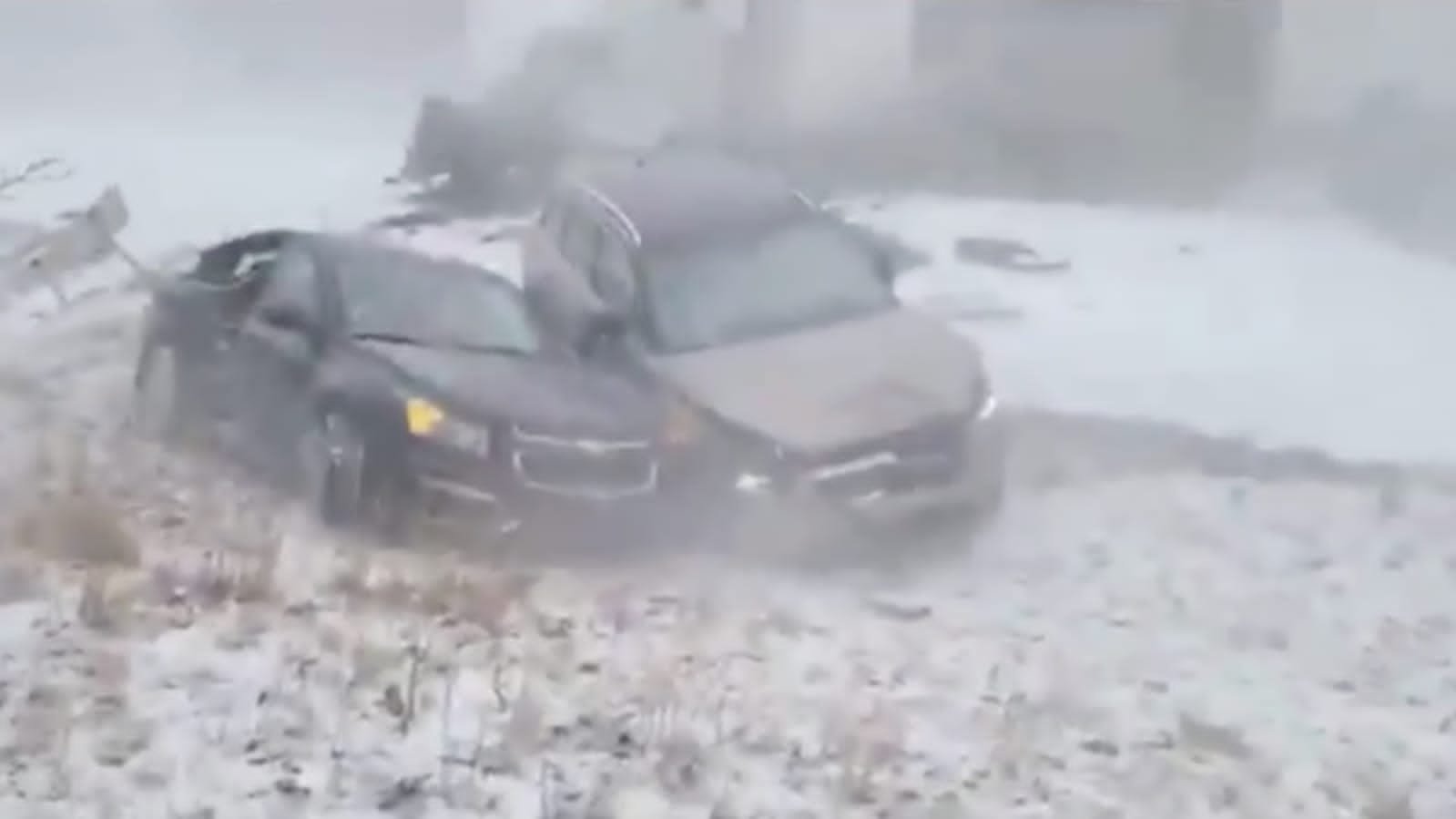 وقال متحدث باسم الشرطة إنه وفقا للنتائج الأولية كانت هناك عاصفة قوية من المطر الجليدي (البرَد)، تسببت في اضطراب الوضع المروري.
