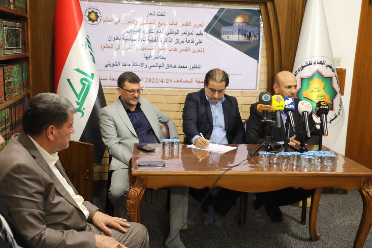 اقام المؤتمر الوطني العام للكورد الفيليين في مركز الذاكرة الفيلية في مقر المؤتمر في شارع فلسطين ندوة سياسية بعنوان (تحرير القدس هدف جميع المسلمين والاحرار في العالم) وذلك بمشاركة جمع من المثقفين والاكاديميين ولاعلاميين واعضاء المؤتمر الوطني العام للكورد الفيليين.