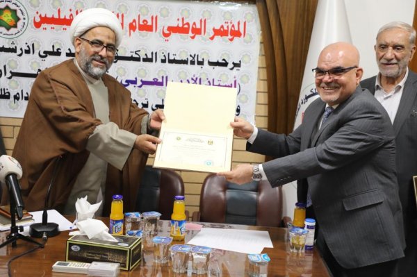 المندلاوي واعضاء المؤتمر أكدوا أهمية زيارة الدكتور اذر شب وسماحة الشيخ اسعد التميمي والتي جاءت بالتنسيق والتعاون مع الملحقية الثقافية لسفارة الجمهورية الاسلامية الايرانية في العراق.