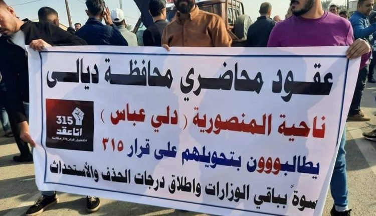 واصل محاضرو ديالى، اعتصامهم أمام مبنى التربية لليوم الثاني على التوالي، فيما طالبوا بشمولهم بقرار 315.