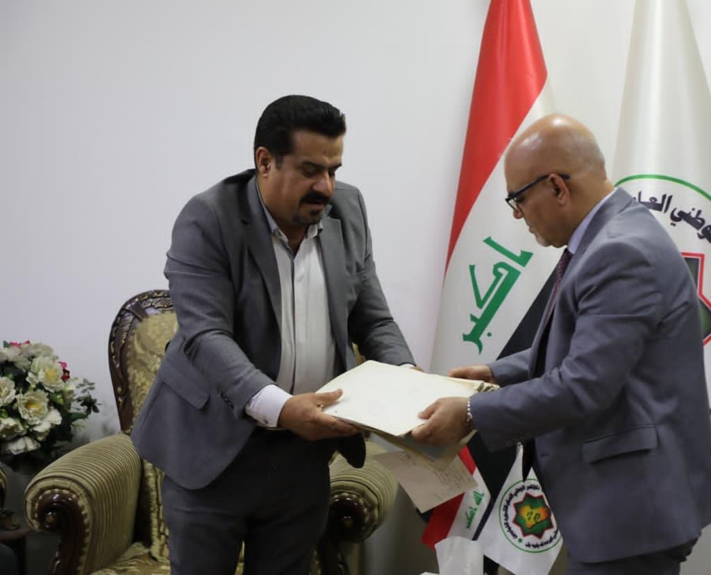 سلم رئيس مركز اتحاد الخبراء الاستراتيجيين ا.صباح زنكنة مدير عام دائرة شهداء الحشد الشعبي في مؤسسة الشهداء الاستاذ طارق المندلاوي نحو ٤٠ ملفا يضم اخطر التحقيقات السرية والتقاير الامنية لاحدى دوائر النظام الصدامي القمعي ضد ابناء الشعب العراقي.