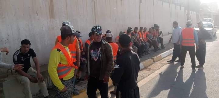 تظاهر العشرات من عمال النظافة وسط مدينة بعقوبة مركز احتجاجا على رفض المحافظة تحويلهم الى عقود 315.