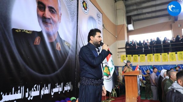 تزامناً مع عيد الغدير الأغر الفيليون يحيون نشيد( سلام يامهدي) لأول مره باللغة الكوردية الفيلية بحضور جماهيري كبير ....أحيا المؤتمر الوطني العام للكورد الفيليين مناسبة الولاية الكبرى وعيد الغدير الأغر وقدمت فرقة المؤتمر للانشاد أنشودة (سلام يامهدي) لأول مره باللغة الكوردية الفيلية بصوت القارئ المبدع ملا منير القره لوسي .بدوره اثنى رئيس المؤتمر الوطني العام للكورد الفيليين الدكتور طارق المندلاوي أثناء القاءه كلمتهِ على الاهتمام بالاطفال والناشئة لخلق جيل جديد يواجه تحديات العولمة والحرب الناعمة وشكر الجمهور الغفير على حضوره مشجعا على اعمال شبيهة بهذا العمل الذي من خلاله وجه اطفال ايران رسائل هامة للعالم اجمع .