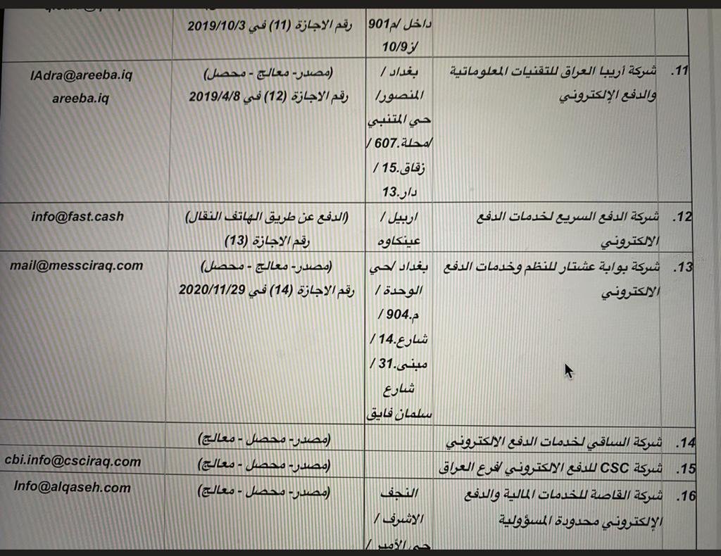 وأضاف المصدر أن "البنك المركزي منح شركة بوابة عشتار للدفع الإلكتروني لصاحبها (ع غ) اجازة على الرغم من أنه سبق وان اصدر قراراً بإيقاف منح الاجازات"، مبيناً ان "منح الشركة اجازة جاء بناءَ على علاقة صاحبها بإدارة البنك المركزي".