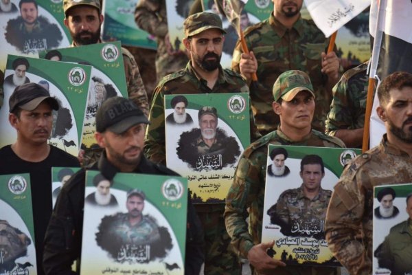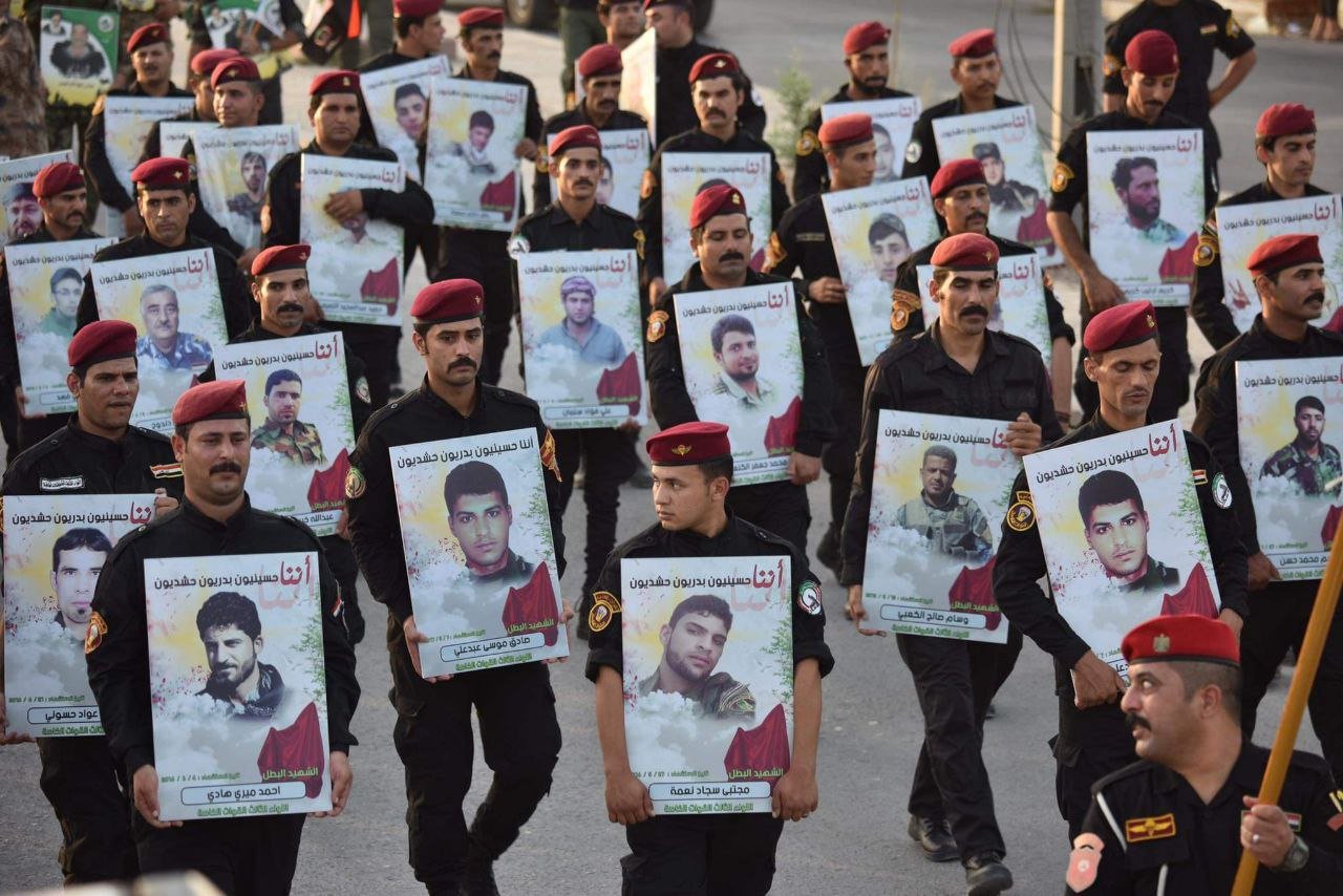 وتضمنت المسيرة التي انطلقت في شارع فلسطين ببغداد رفع صور شهداء الحشد والقوات الأمنية الذين امتزجت دمائهم خلال العمليات العسكرية لتحرير المدن العراقية.