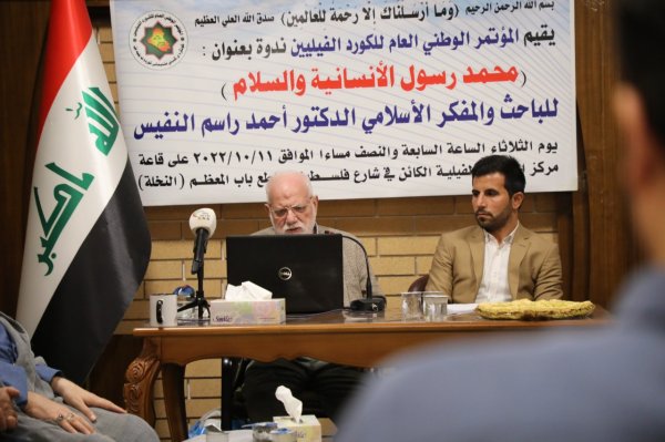 ضمن الرسائل الدورية في أقامة الندوات الثقافية والفكرية للمركز الثقافي الفيلي أستضاف المؤتمر الوطني العام للكورد الفيليين الباحث والمفكر المصري الدكتور (أحمد راسم النفيس) في ندوة ثقافية تحت عنوان (محمد رسول الأنسانية والسلام)