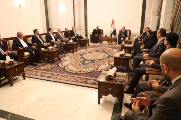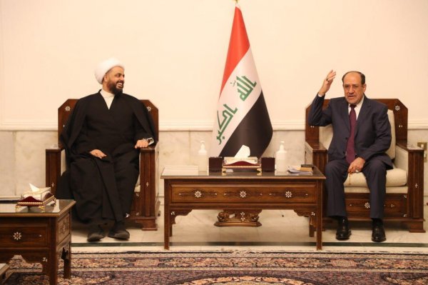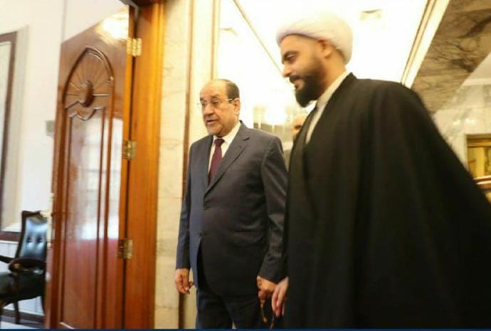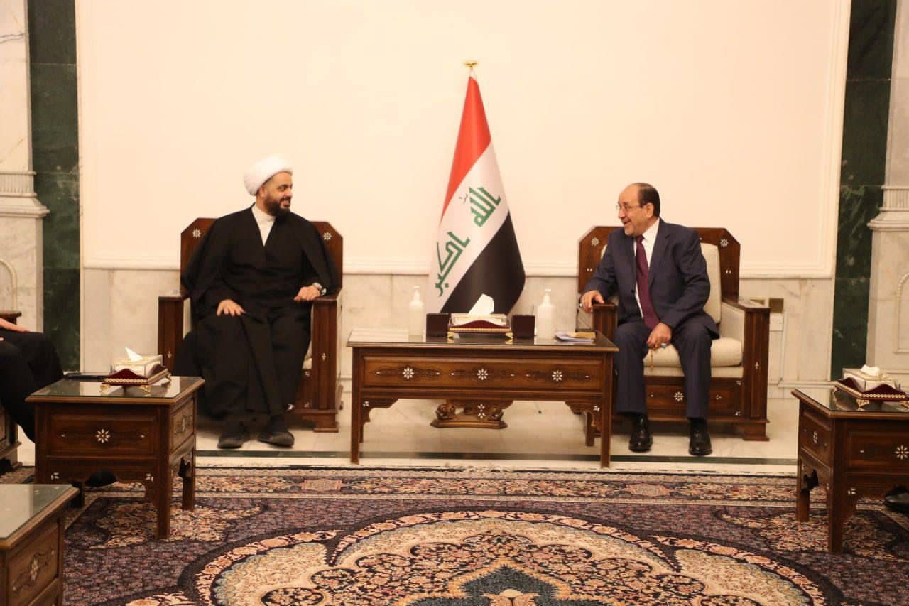 زار الأمين العام لحركة عصائب أهل الحق سماحة الشيخ قيس الخزعلي يصحبه وفد من كتلة "صادقون" النيابية السيد نوري المالكي رئيس "إئتلاف دولة القانون" في مكتبه ببغداد .