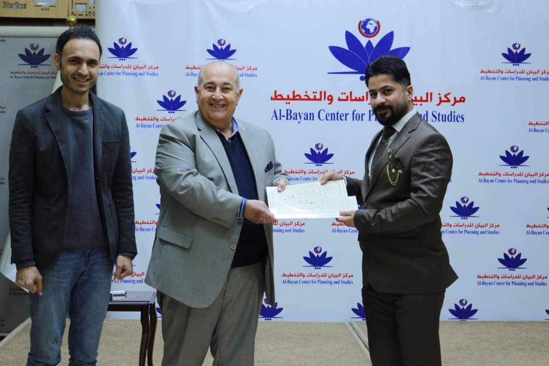 وبحضور الاستاذ البروفيسور Mahmood Daghir  تم تكريم الدكتور علي عبد الكاظم الفيلي لحصوله على المركز الاول ضمن مجموع البحوث المشاركة في برنامج ( تعزيز النشاط لكشف الفساد وتشجيع الاصلاح ) الذي اقامه Al-Bayan Center for Planning and Studies مركز البيان للدراسات والتخطيط