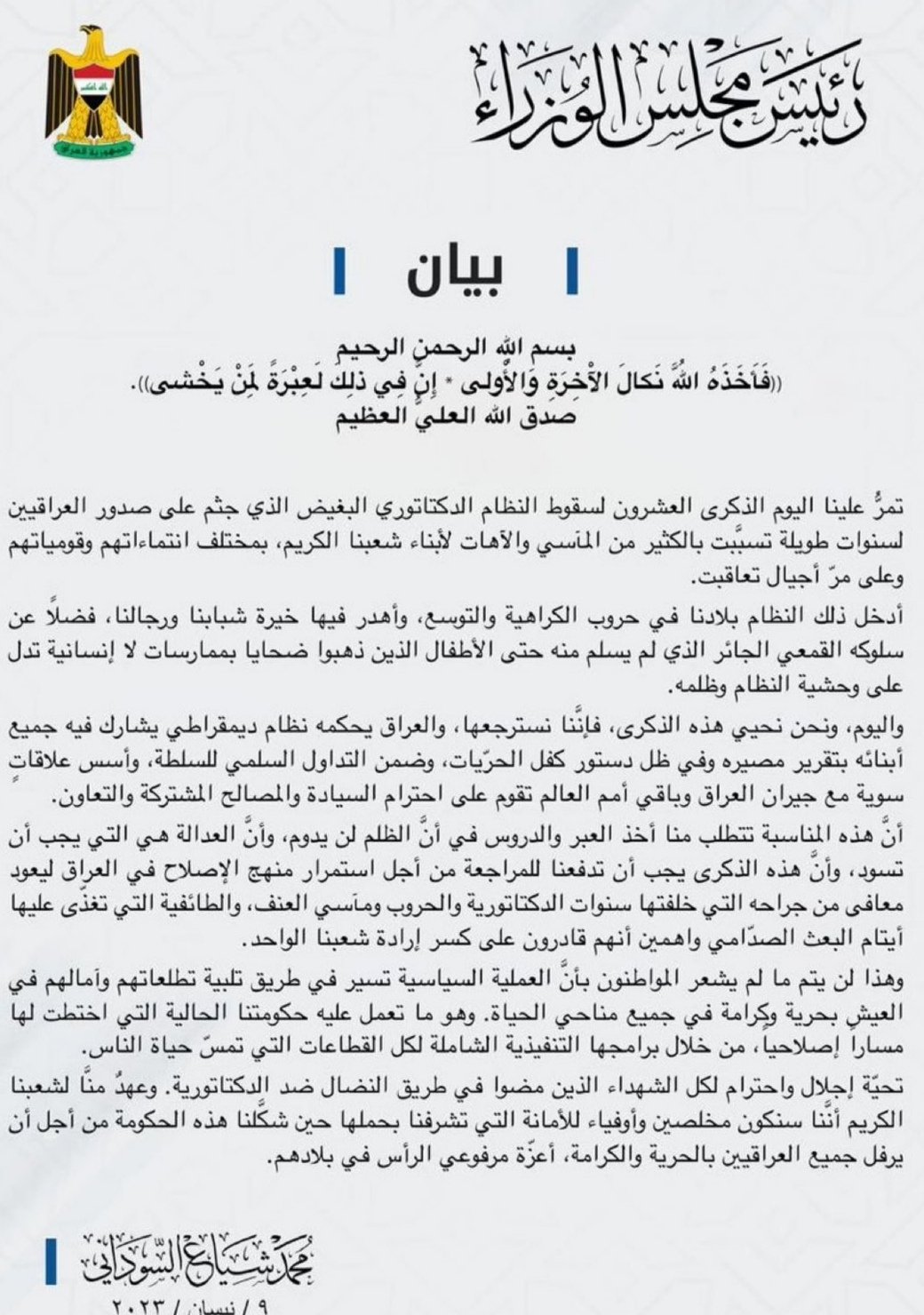 أكد رئيس الوزراء محمد شياع السوداني، اليوم الاحد، أن الحكومة الحالية خطت مساراً إصلاحياً