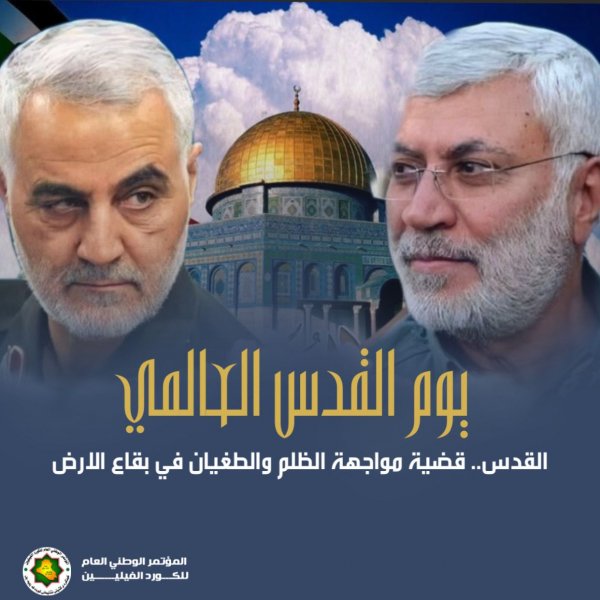 وفي يومنا هذا، نجدد العهد لكل احرار الدنيا بأن الكورد الفيليين باقون على وفائهم وكلمتهم وموقفهم دون أن يزحزحهم عنه شيء أبداً، حتى يعود الحق لأهله ونصلي جمعاً في القدس.