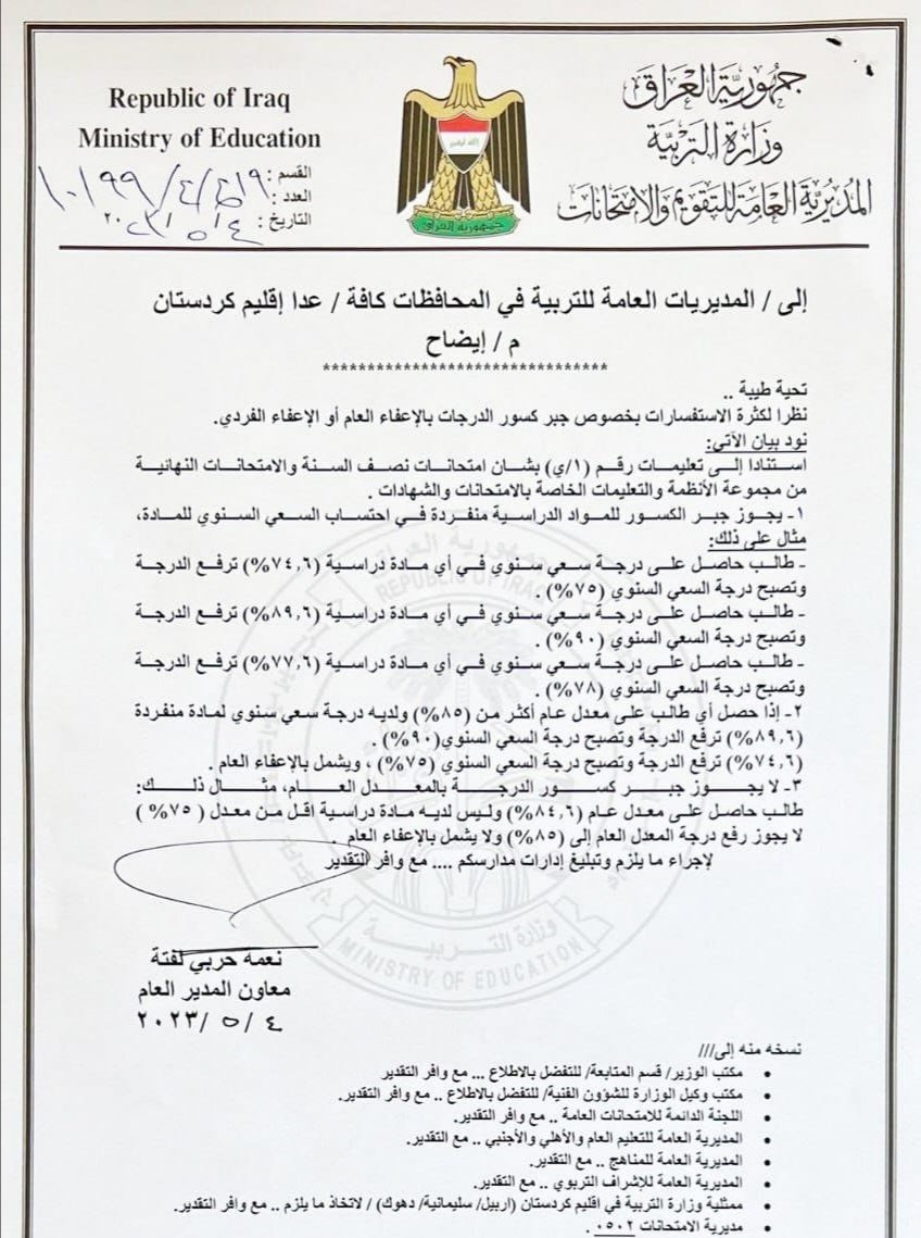 أصدرت المديرية العامة للتقويم والامتحانات في وزارة التربية، اليوم الخميس، توضيحاً حول آلية جبر الكسور للإعفاء العام والفردي للصفوف غير المنتهية.وأدناه نص التوضيح