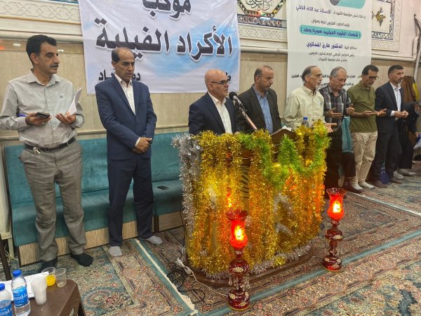 وبعدها اعتلى المنصة السيد طارق المندلاوي وابلغ الحضور تحيات النائب الاول لرئيس مجلس النواب الاستاذ محسن علي اكبر المندلاوي ورئيس مؤسسة الشهداء الاستاذ عبد الاله النائلي وتحدث عن دور موسسة الشهداء في تقديم الخدمات لذوي الشهداء وتسهيل اجراءات معاملاتهم استنادا لقانون رقم 2 لسنة 2016 وبدوره ابدى استعداده مع فريق العمل في المؤتمر الوطني العام للكورد الفيليين في تذليل كل العقبات امام مشاكل ومعانات الكورد الفيليين وان هناك جهودا كبيرة تبذل من قبل قيادة المؤتمر مع الحكومة الموقرة والفرصة جيدة في هذه المرحلة وخصوصا بوجود كل الخيرين في مؤسسات الدولة وعلى راسهم السيد رئيس الوزراء المهندس محمد شياع السوداني وهو ابن الشهداء والمضحين ويعلم جيدا معانات الكورد الفيليين وكذلك الاستاذ عبد الاله النائلي رئيس مؤسسة الشهداء ووجود السيد محسن علي اكبر المندلاوي كنائب الاول لرئيس مجلس النواب في السلطة التشريعة وكذلك التعاطف الكبير من قبل سيادة رئيس مجلس القضاء الاعلى الدكتور فائق زيدان واستجابته الاخيرة لكتاب المؤتمر الوطني العام للكورد الفيليين حول تعيين قاض مختص للنظر في شؤون المغيبين من شباب الكورد الفيليين لغرض اصدار حجة الوفاة لهم وتعيين قاض لمحكمة البداء حول مصادرة الاموال المنقولة وغير المنقولة لابناء المكون الفيلي والتوصيات التي صدرت من الامانة العامة لمجلس الوزراء حول قرار مجلس الوزراء 426 لسنة 2010 وبين ان مؤتمر اربيل الاخير حول الابادة الجماعية للكورد الفيليين برعاية الزعيم مسعود البرزاني كان حدثا مهما وخرجت بمجموعة من التوصيات حول قضايا الكورد الفيليين.