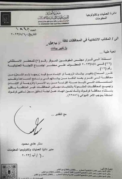 ووفق قرار المفوضية تلقت "تنوع نيوز" نسخة منه فأنه تم السماح بتغييرربيانات الزوجة أو الأبناء مع قيد زوجها {لم الشمل} من محافظة الى أخرى بعد التأكد من بياناتهم في برنامج المساعدة".