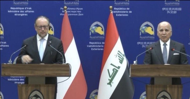 وقال حسين خلال مؤتمر صحفي مشترك مع نظيره النمساوي ألكسندر شالنبرغ، إنه "بحث مع نظيره النمساوي عدداً من الملفات وفي مقدمتها العلاقات السياسية بين البلدين، وكذلك عمل الشركات النمساوية في العراق وإعادة الطيران للخطوط الجوية النمساوية"، لافتاً الى أن "المباحثات تضمنت فتح المجال والطريق ومساعدة الخطوط الجوية النمساوية لعودة رحلاتها الى العراق".