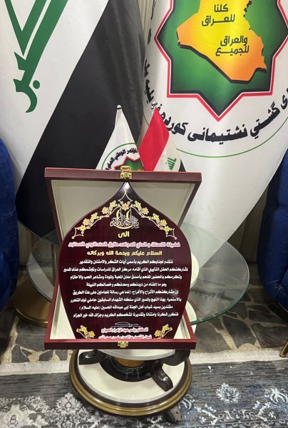 استقبل الدكتور طارق المندلاوي رئيس المؤتمر الوطني العام للكورد الفيليين وفد مركز العراق للدراسات كل من السيد عباس النوري والسيد ناظم الخزعلي وقدموا درع الوفاء للشهداء الابرار الذين نذروا انفسهم لدين والوطن مرسل من قبل نجل الشهيد الكبير عز الدين سليم والذي حمل لواء تحرير الوطن على نهج سيد الشهداء عليه السلام .