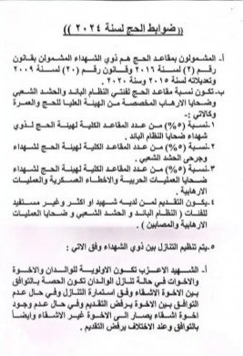 وذكر بيان للمؤسسة، تلقته "تنوع نيوز" أن التقديم على استمارة الحج لسنة 2024، للمشمولين من ذوي الشهداء من ضحايا جرائم حزب البعث وجرحى وشهداء من ضحايا العمليات الحربية والاخطاء العسكرية والعمليات الإرهابية والقوات الامنية بجميع صنوفها وشهداء وجرحى الحشد الشعبي، يبدأ من اليوم ولمدة شهر واحد".