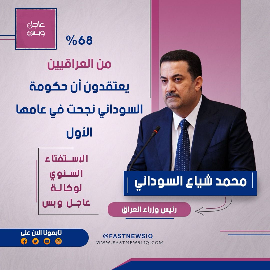 وأكدت قائلةً: "كما حصل رئيس الوزراء الجديد نسبيا محمد شياع السوداني على تصنيف تأييد قوي (69٪) بين العراقيين في عام 2023، وهو أعلى مستوى سجلته مؤسسة غالوب لأي زعيم عراقي منذ أن بدأت في تتبع هذا الإجراء في عام 2012. تولى السوداني منصبه في أكتوبر 2022 بعد سنوات من الاضطرابات المناهضة للحكومة والاحتجاجات والعنف".