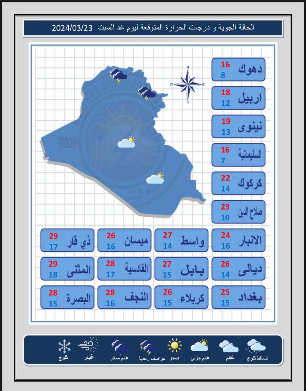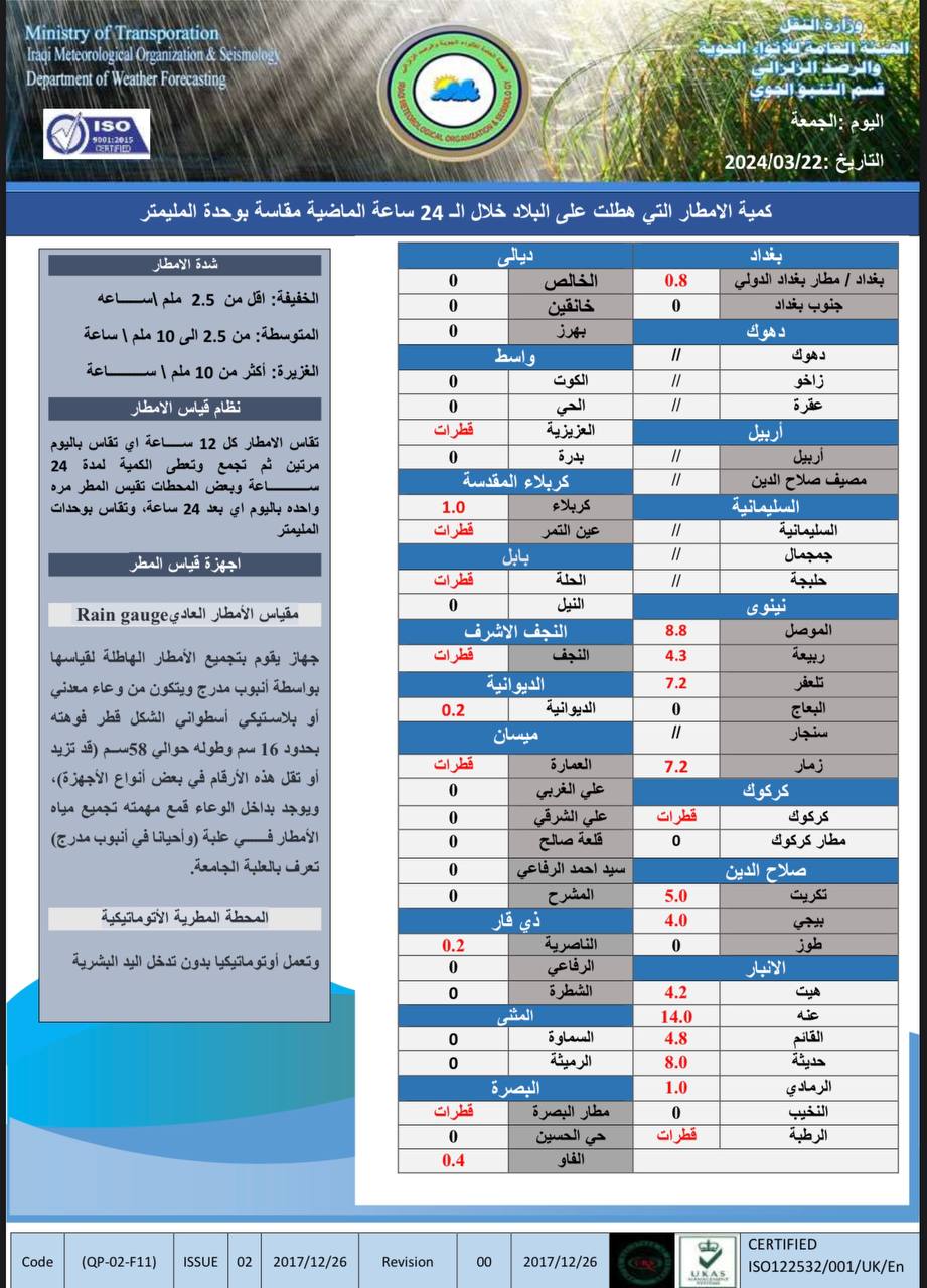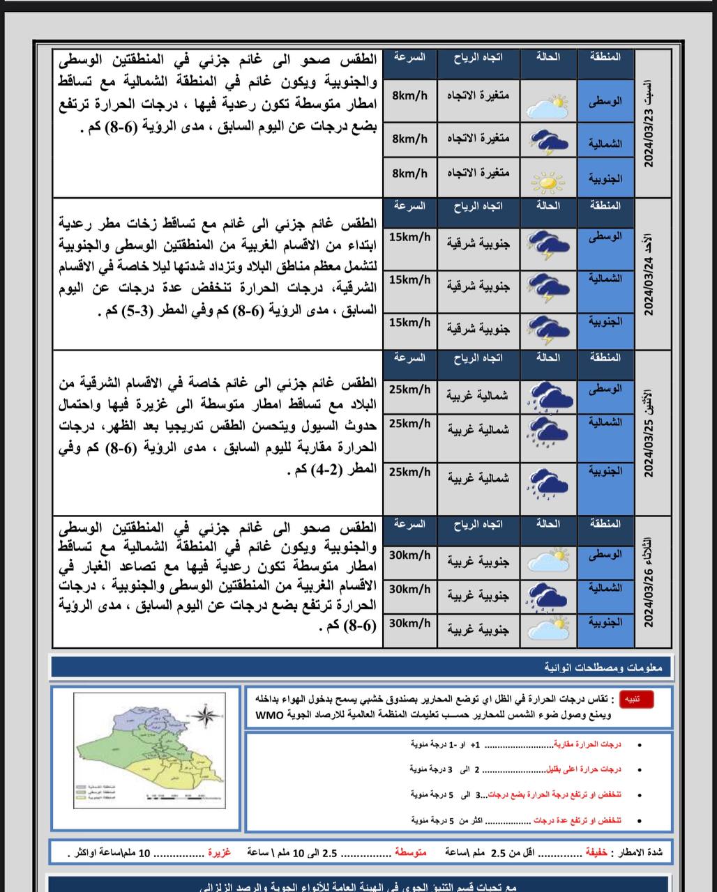 أعلنت هيئة الأنواء الجوية، اليوم الجمعة، عن حالة الطقس في البلاد للأيام المقبلة، فيما توقعت أمطاراً غزيرة وانخفاضاً في درجات الحرارة.