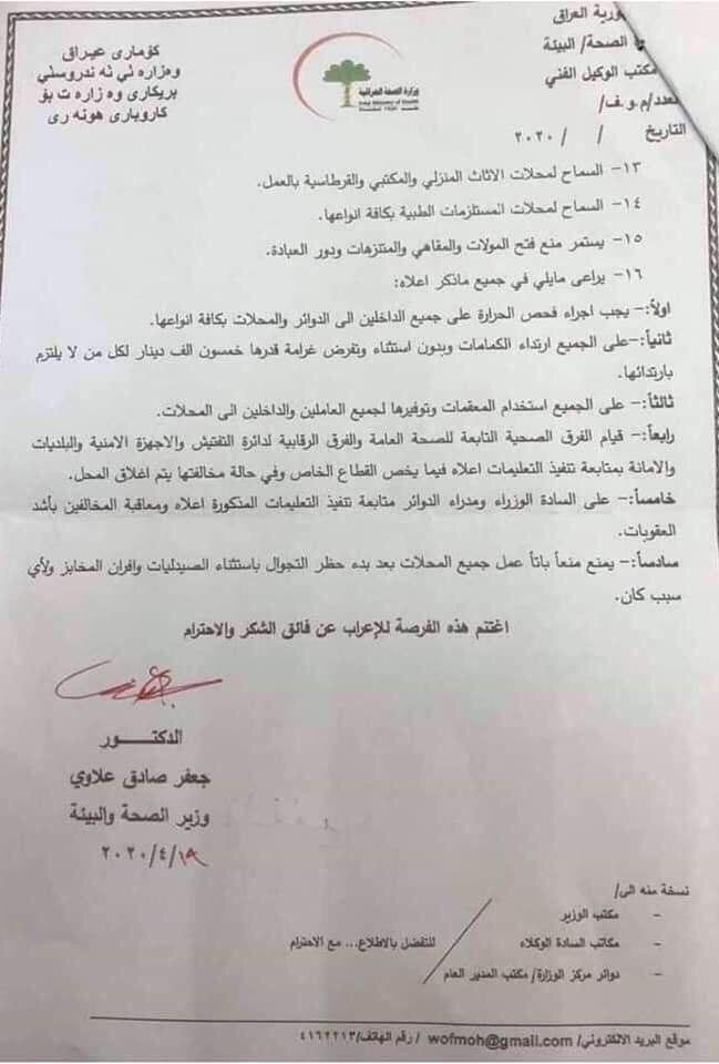 عاجل ..وزارة الصحة تقترح مجموعة من الاجراءات على اللجنة العليا