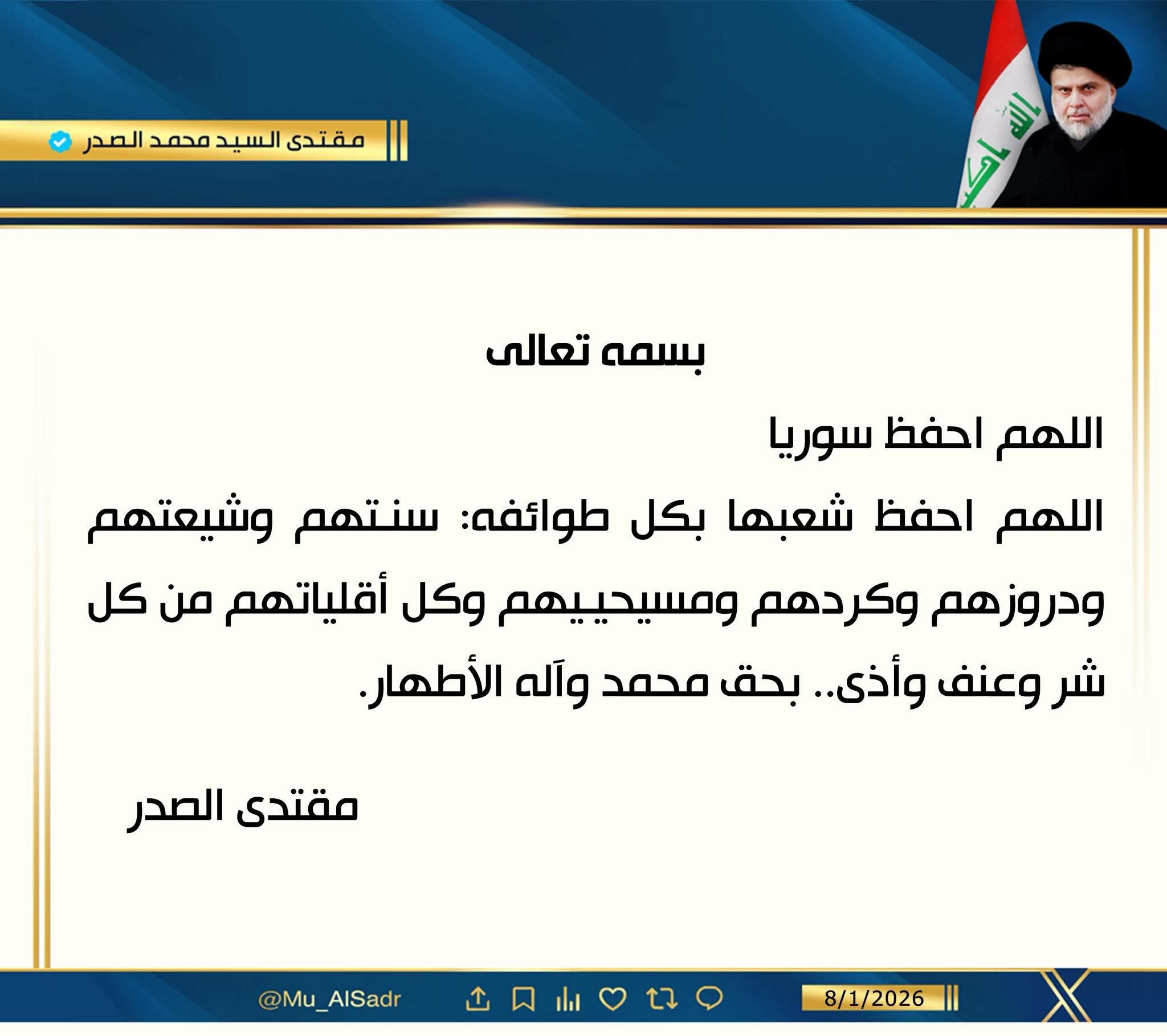 وأضاف أن "تصدي قوات الجيش والشرطة والحشد الشعبي والبيشمرگة وجميع قواتنا الأمنية بمختلف صنوفها هو من حفظ كرامة الوطن وسلامة المواطنين، كما كان لفتوى المرجعية الدينية العليا في النجف الأشرف أعظم الأثر في استنهاض الهمم وتوحيد الشعب ضد قوى التخلف والإرهاب التي طال ظلمها جميع العراقيين وبالأخص أبناء شعبنا من الإيزيديين".