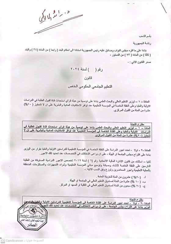 صوت مجلس النواب العراقي، اليوم الأربعاء، على مشروع قانون يخص التعليم الجامعي الحكومي الخاص.