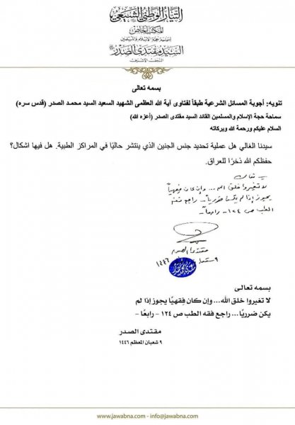 رد زعيم التيار الصدري، مقتدى الصدر، أمس الاثنين، على سؤالين وجههما إليه أحد أتباعه حول مسألة تحديد جنس الجنين والسحر، معتبرًا أن هذه الأمور تندرج ضمن "تغيير خلق الله".
