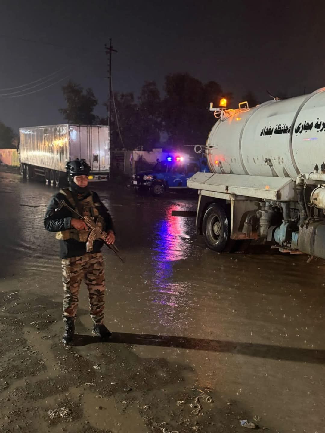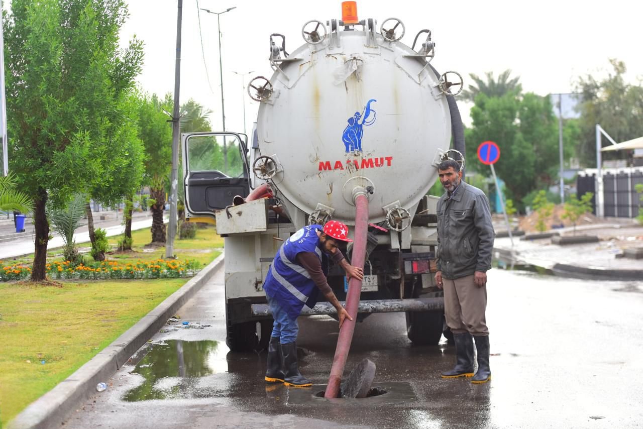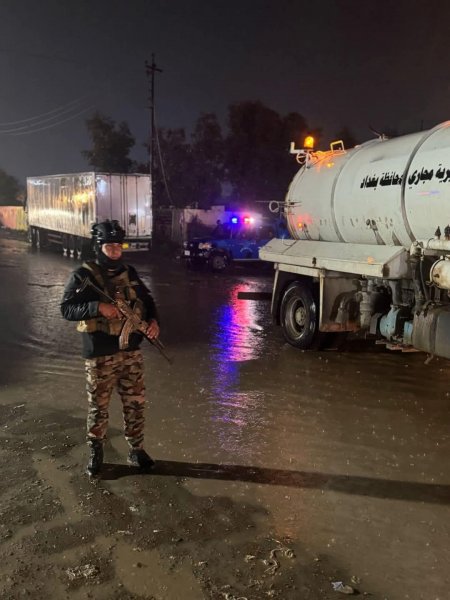 وجه الفريق الركن قائد عمليات بغداد باستنفار كافة الجهود وإرسال العجلات الاختصاصية "الحوضيات" وذلك لإسناد الدوائر الخدمية في سحب مياه الأمطار من جميع مناطق العاصمة. وقد تم التنسيق مع المقر المسيطر لقيادة العمليات لضمان سرعة الاستجابة والتعامل مع تجمعات المياه في عموم العاصمة بغداد.