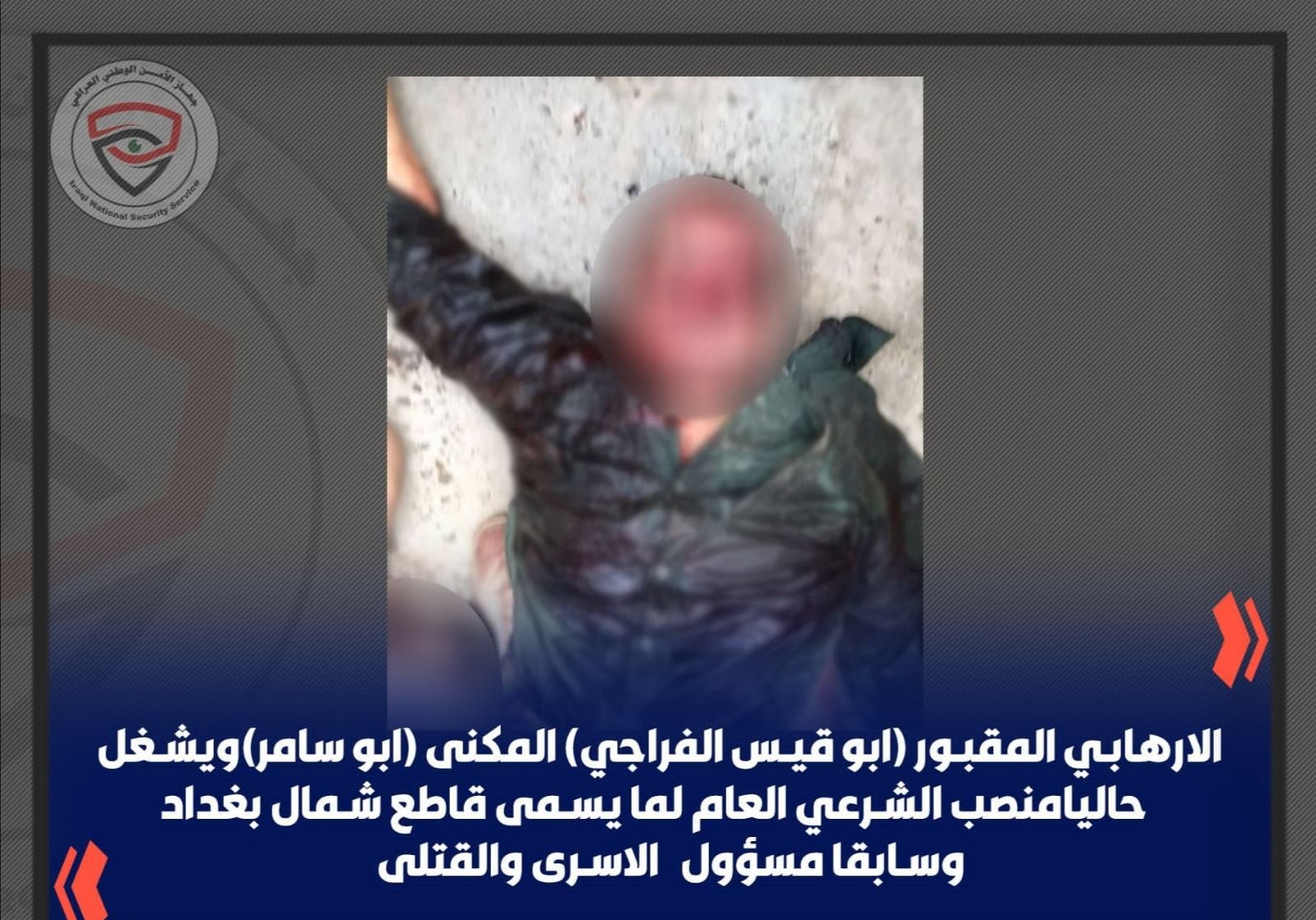 وأضاف، أن "الإرهابي يُعد أحد أخطر الإرهابيين في العراق والعالم".