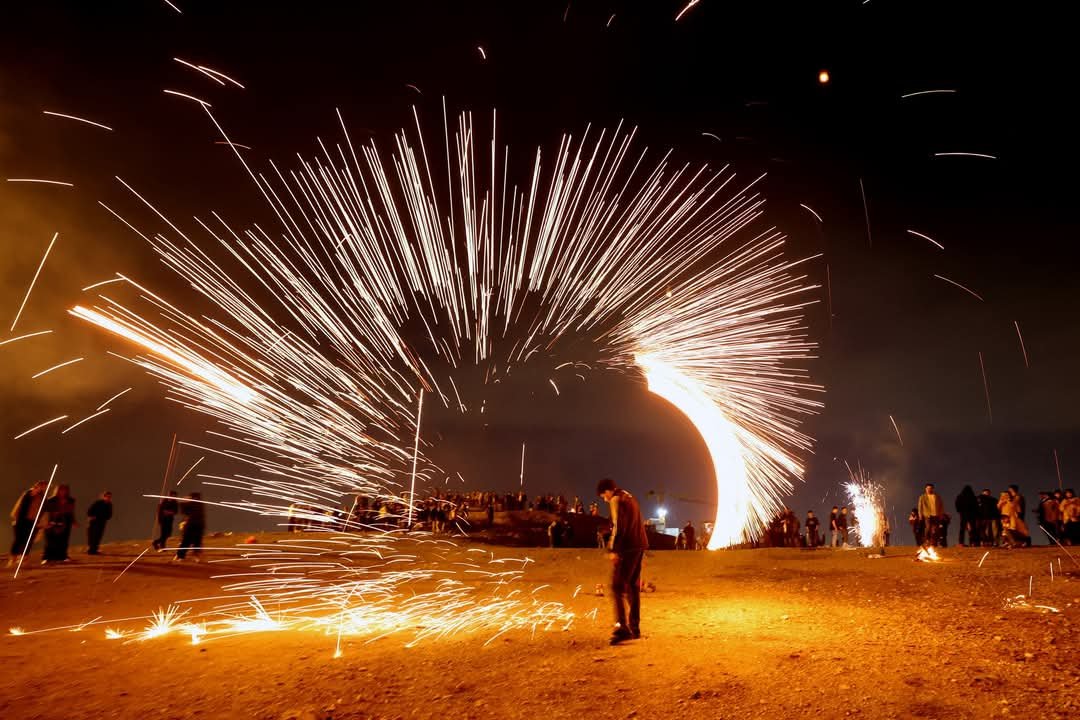 يُشعل الإيرانيون الألعاب النارية خلال احتفال "الأربعاء الأحمر" أو "جوار شه مه سوري"، الذي يُقام سنويًا في آخر أربعاء قبل عيد النوروز الربيعي. ويتضمن الاحتفال القفز فوق النيران، والرقص حولها، وإطلاق المفرقعات في الشوارع والساحات العامة، تعبيرًا عن التخلص من الطاقات السلبية واستقبال العام الجديد بالنور والفرح.