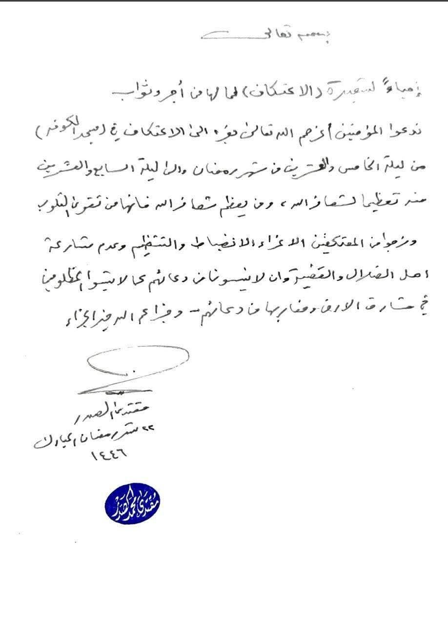 يواصل المؤمنون إحياء ليالي شهر رمضان المبارك، حيث أقيمت فقرات البرنامج العبادي لليلة الخامسة والعشرين من الشهر الفضيل في جامع فاطمة الزهراء (عليها السلام) في النجف الأشرف، وذلك بتوجيه من سماحة السيد مقتدى الصدر (أعزه الله) وبرعاية المكتب الخاص لسماحته.