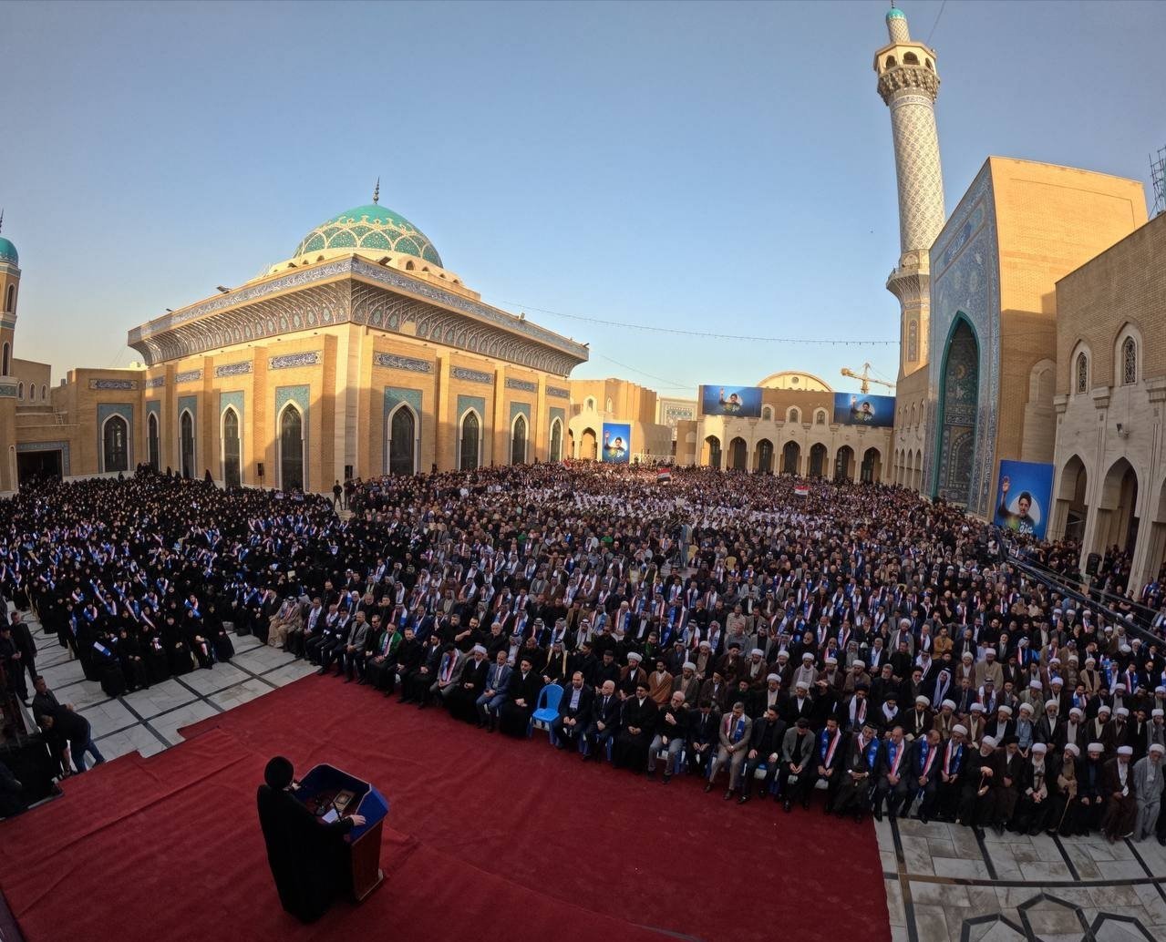 وبين، أن "التقدم الحاصل في الكثیر من قطاعات الدولة یدعونا إلى الفخر والتكاتف أكثر للإسراع في عجلة التطور والبناء في بلدن، وإن المنجزات من حق العراقیین جمیعا، فھم الركیزة في تحقیقھا وفي تھیئة البیئة المناسبة للنجاح، وھذا ما یجعلنا نجدد في كل مرة دعمنا لكل خطوة ومسار یسھم في تعزیز تلك المنجزات واكمال مسارھا نحو التجدد والتطوير، وإن حجم الاستھداف الثقافي والفكري الذي یتعرض له شعبنا وأمتنا العربیة والإسلامیة یتطلب وقفة شجاعة ومسؤولة في مواجھة الحملات الدخیلة والمشبوھة التي ترید العبث بأمن وقیم مجتمعنا الإسلامي والعربي الأصیل".