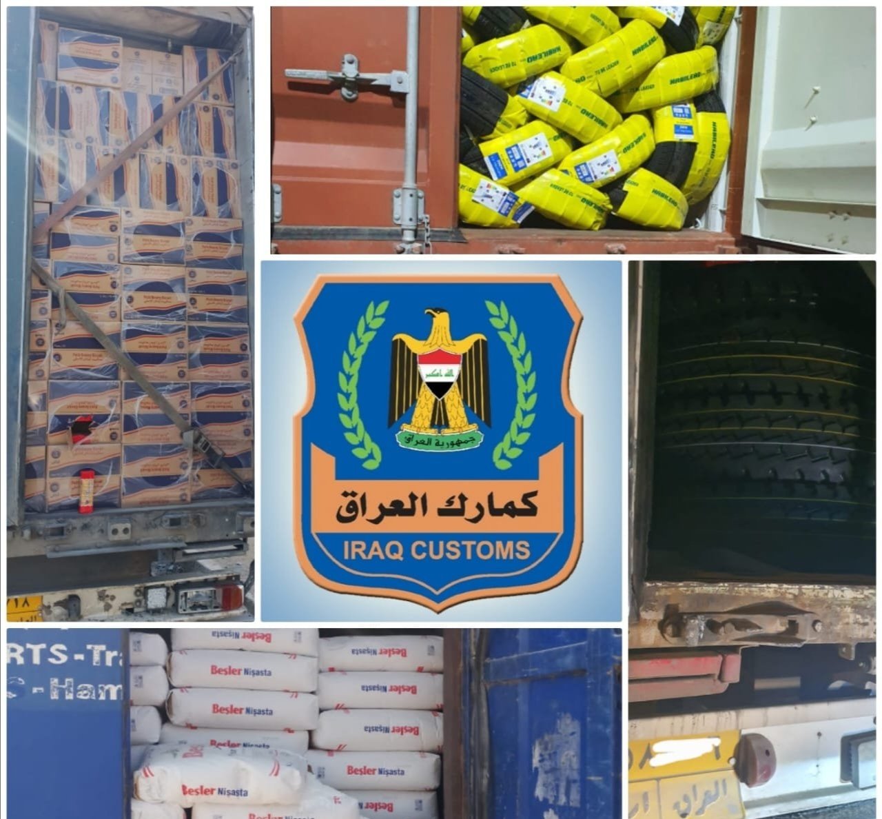 وأوضحت أن "قسم التحري ومكافحة التهريب في مديرية جمرك المنطقة الوسطى ضبط بعدة عمليات منفصلة (11) شاحنة محملة (كاربت، كارتون، سليكون، حبيبات بلاستك، سكائر، دراجات نارية ومواد احتياطية، شامبو شعر،صدر دجاج)، فيما تمكن قسم التحري ومكافحة التهريب في مديرية جمرك المنطقة الشمالية من ضبط (4) شاحنات محملة (مواد منزلية، اكسسوارات، حديد ،حليب ،دراجات نارية وأدوات احتياطية) "، مشيرة إلى أن "مركز جمرك أم قصر الأوسط ضبط (3) حاويات حجم 40 قدماً محملة بـ(15) عجلة نوع (تويوتا كراون) دون الموديل المسموح باستيراده".