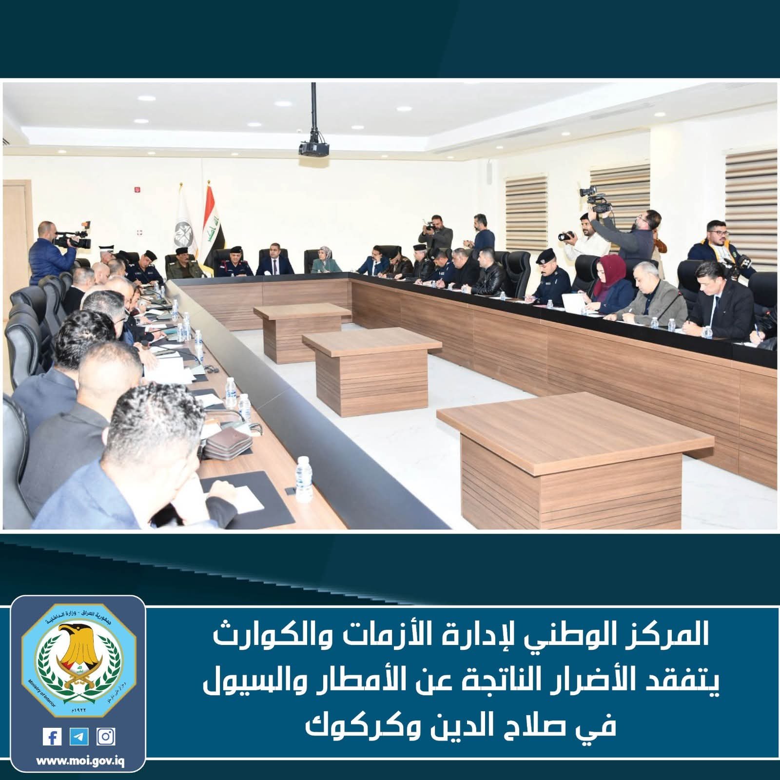 المركز الوطني لإدارة الأزمات والكوارث يتفقد الأضرار الناتجة عن الأمطار والسيول في صلاح الدين وكركوك