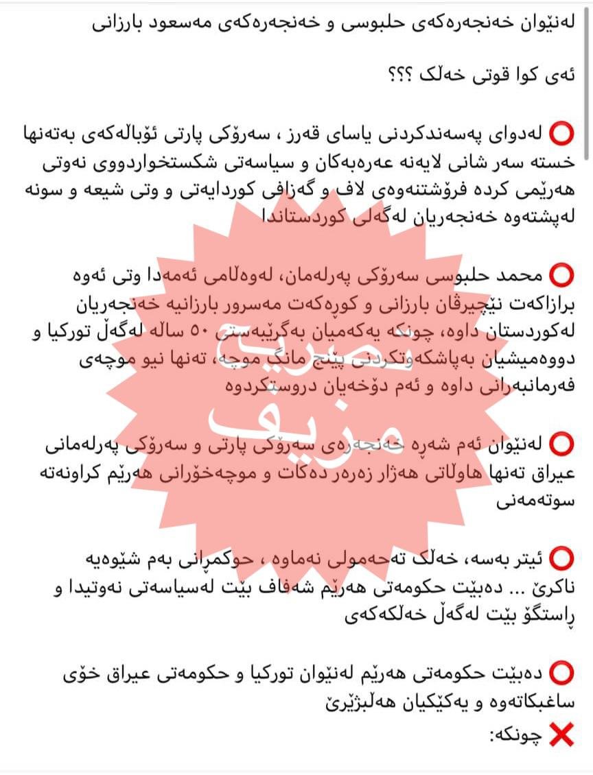 ونشر مكتب الحلبوسي نسخة من التصريح "المزيف" مكتوباً باللغة الكردية.