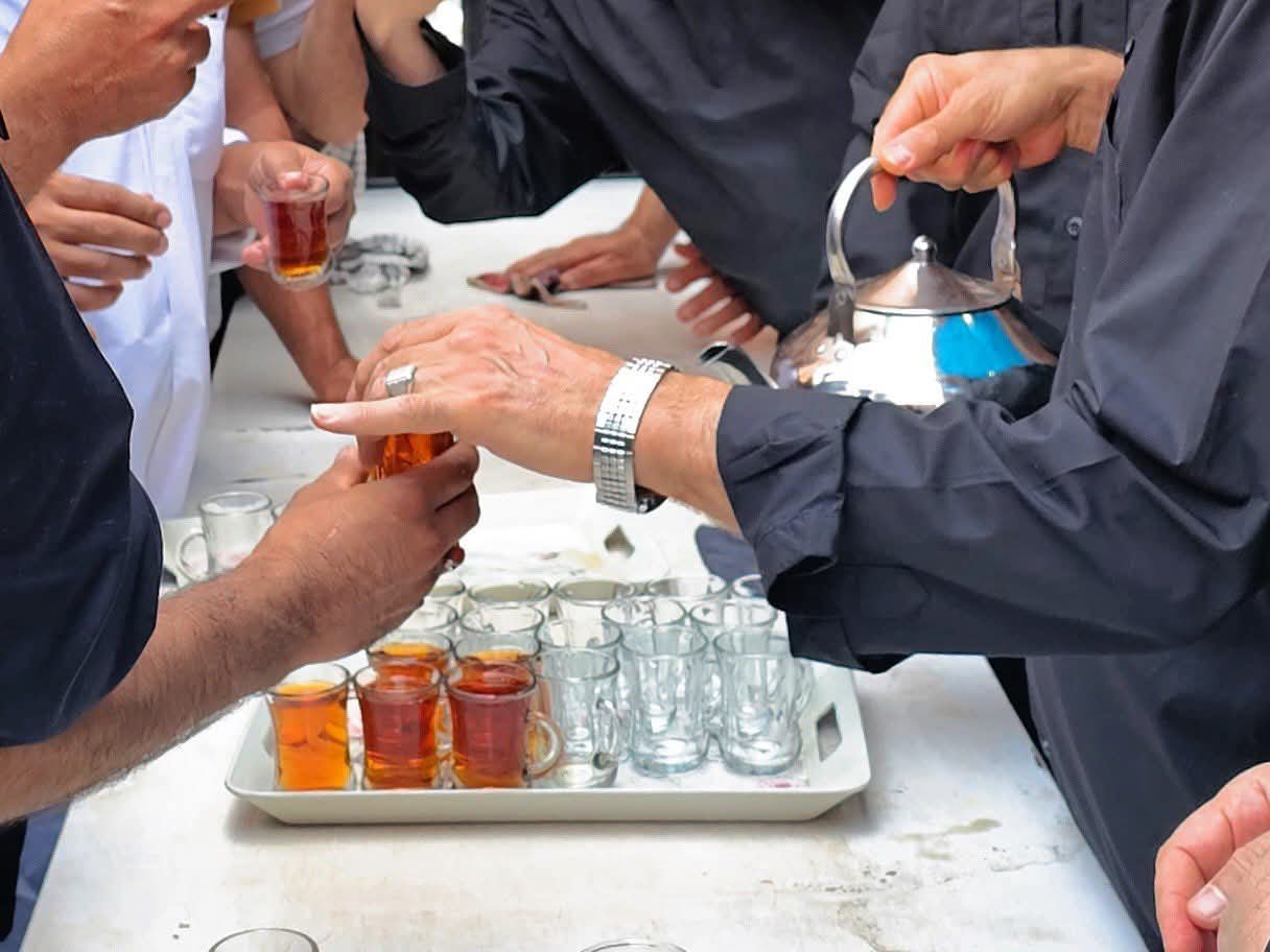 بالصور : علي لاريجاني يشارك في خدمة زائري الأربعينية على طريق النجف – كربلاء