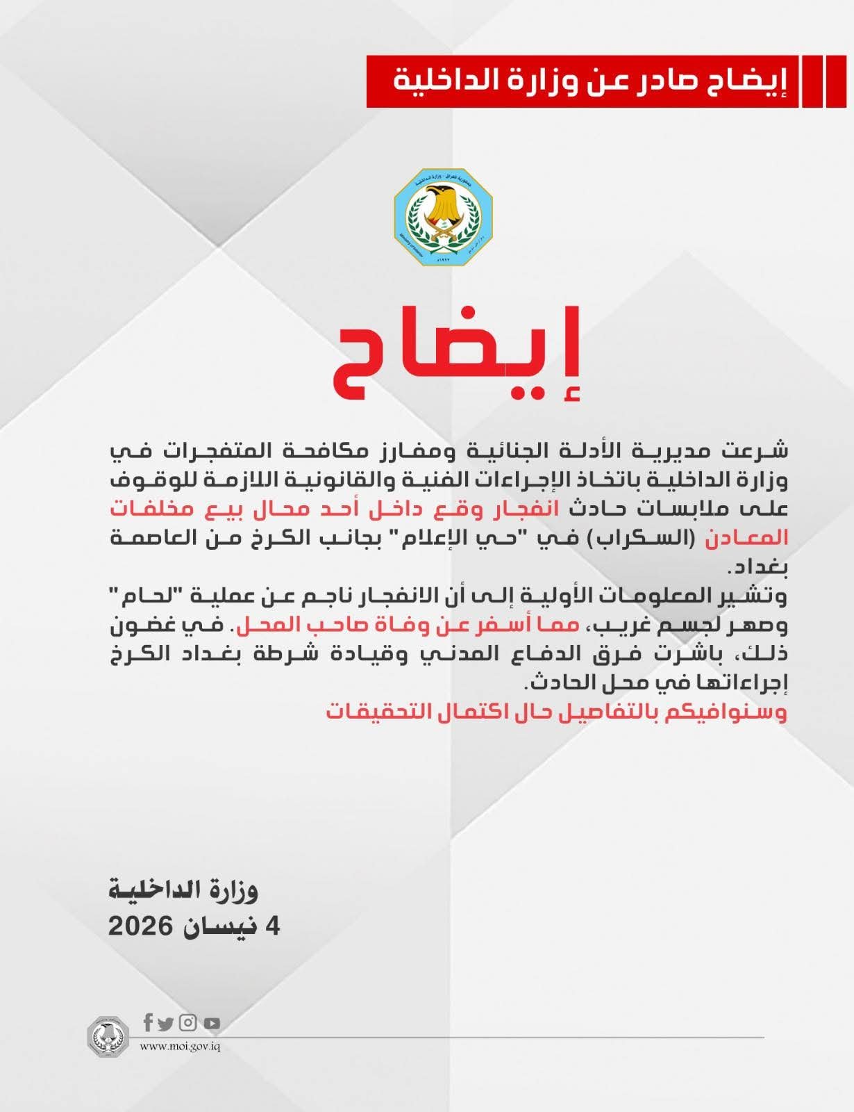 المركزي العراقي يعلن ارتفاع الإيرادات والنفقات للدولة خلال أيار