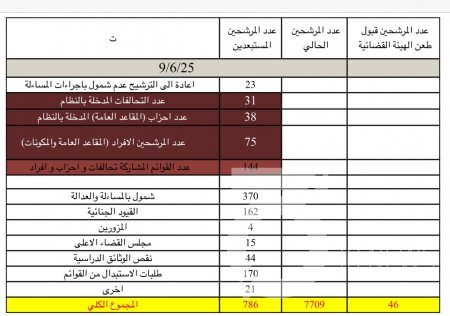 أعلنت مفوضية الانتخابات، اليوم الإثنين، استبعاد 786 مرشحاً من السباق الانتخابي لغاية الآن.وأشارت إلى عودة 46 مرشحا بعد قبول طعونهم.